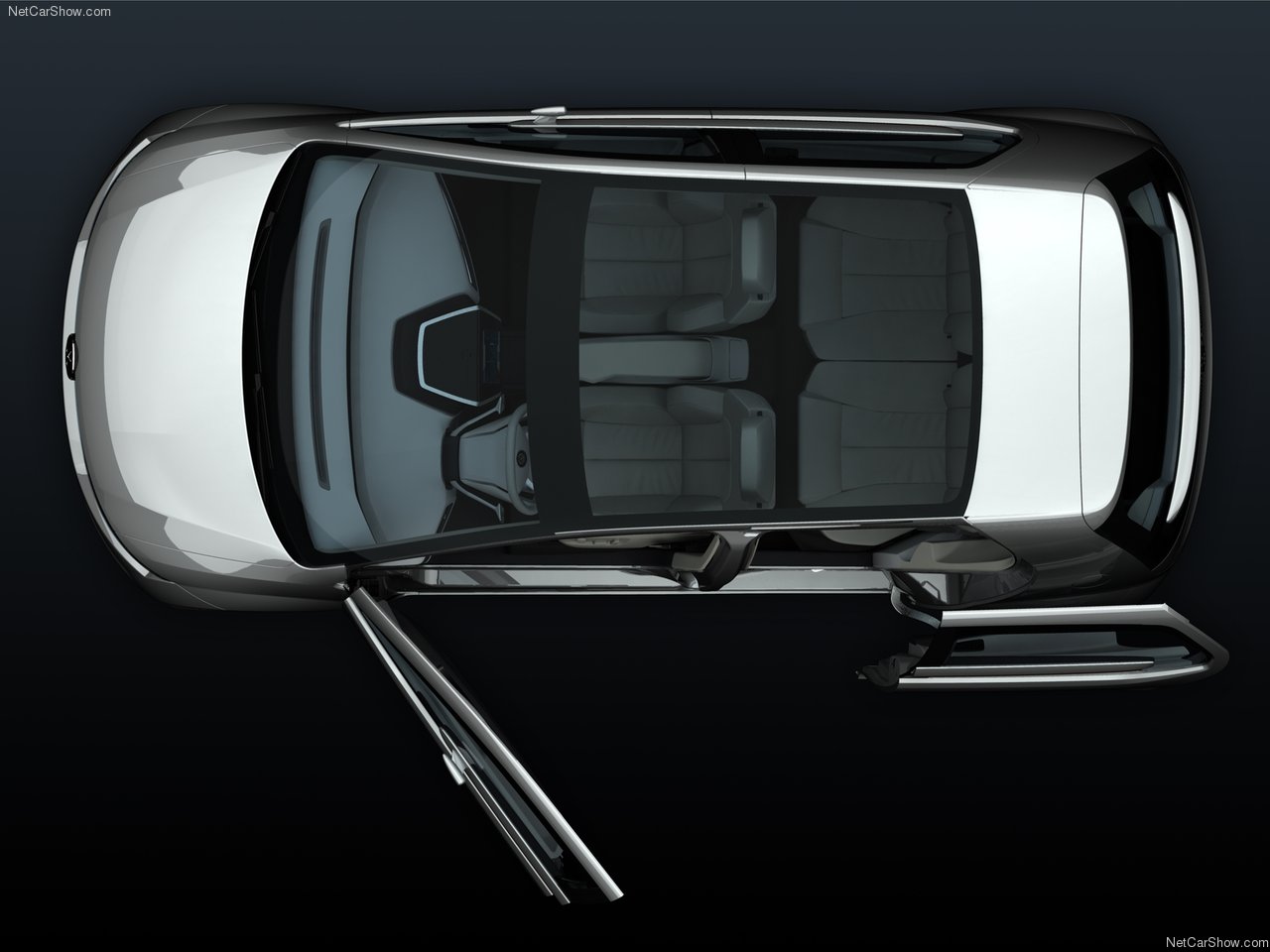An electronically driven system pushes the door outwards and pulls it back parallel to the vehicle body for gaining access to the rear seats. This mechanism, which draws on the one used on the VW Milano Taxi (presented in May 2010), offers the advantageous practicality of sliding doors but without sacrificing their section (room is found inside for a comfortable armrest) and makes it possible to do away with the unattractive tracks on the body typical of this solution.